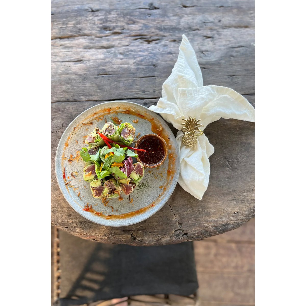 Voeg pure luxe toe aan je tafel met deze ananas servetring in massief messing! Zwaar en vol details, deze servetring is een echt koopje. Het past bij onze bestekcollectie, eveneens in massief messing, inclusief diverse lepels en vorken. Maak uw tafel glanzend en mooi voor uw gasten!