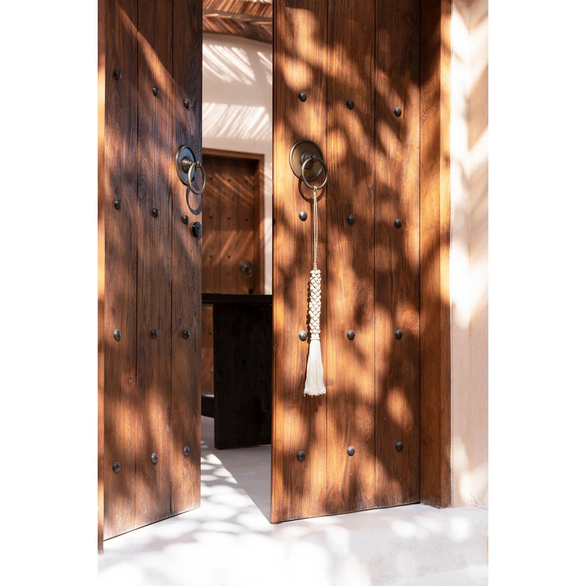 Wij houden van deze prachtige kwast, handgemaakt van katoen en hout door Balinese ambachtslieden. Om naar wens aan deuren, gordijnen of muren te hangen, of gewoon op een ladekast te zetten. Dit kustkwastje geeft een exotische en bohemien sfeer aan uw interieurdecoratie.