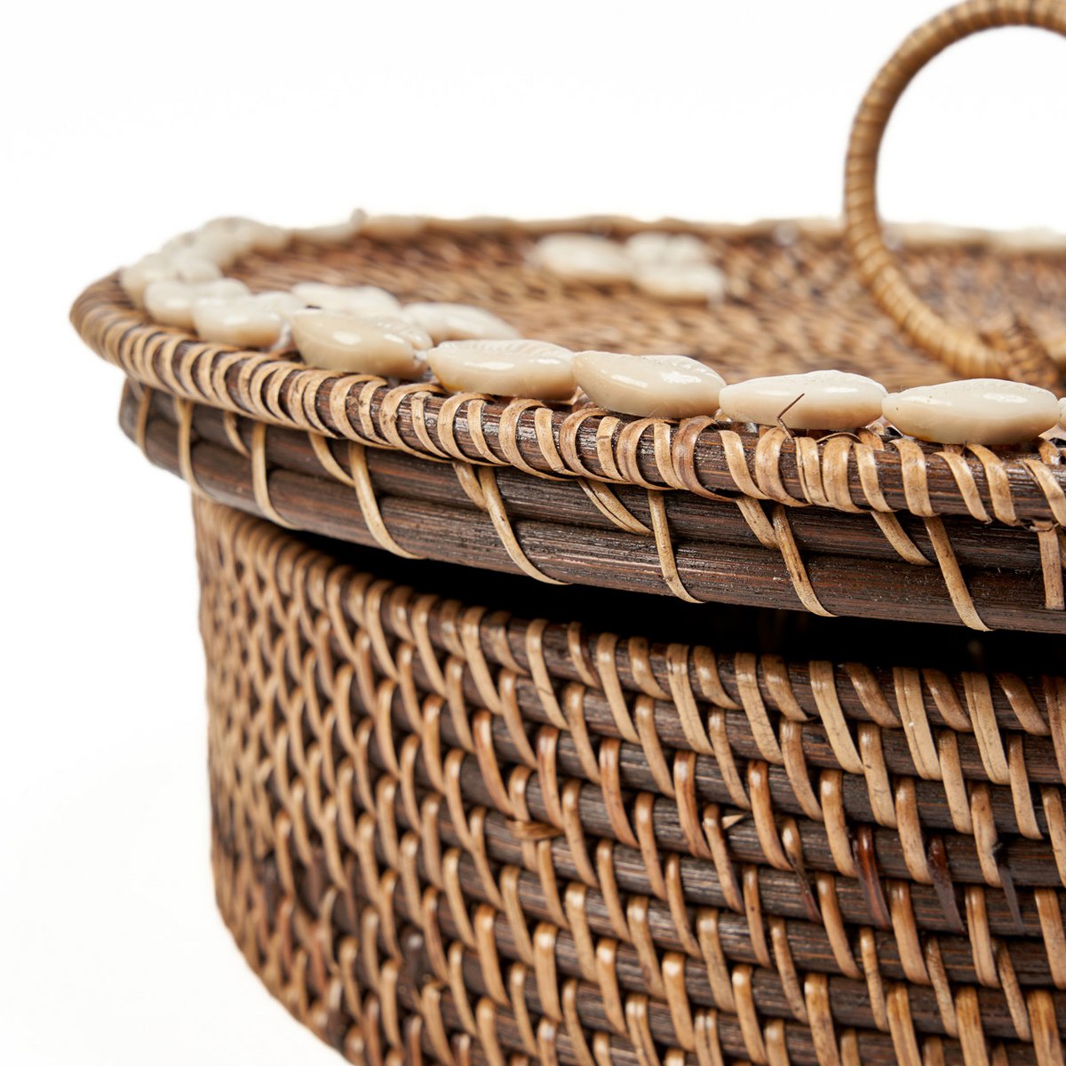 Het warmbruine oppervlak van deze opbergkast van natuurlijk rotan past zich aan verschillende interieurs aan, van Boheemse keukens tot moderne eetkamers. Duurzaam en toch verfijnd, dankzij het verdeelde ontwerp kan het zowel aan praktische behoeften als aan decoratieve doeleinden voldoen.