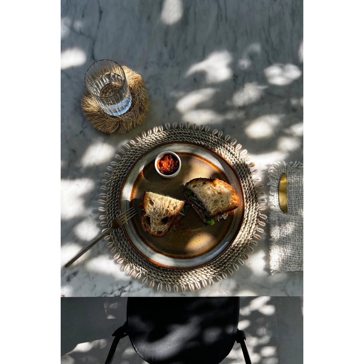 Haal de eilandstijl in huis met deze placemats van zeegras. Omgeven door kauri-schelpen passen ze bij elke tafelsetting.
