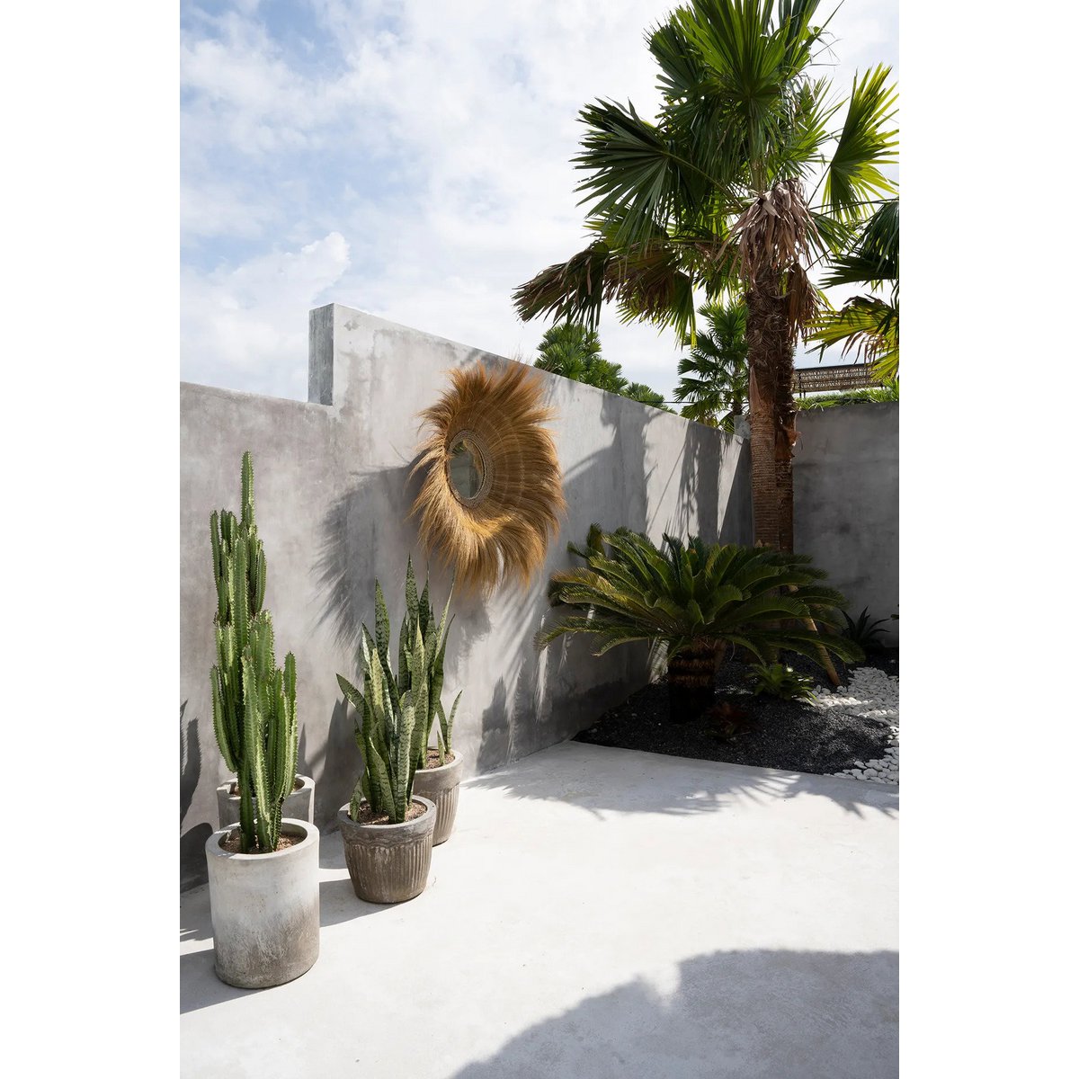 Deze prachtige spiegel is een fantastische manier om een beetje drama toe te voegen aan uw huis, kantoor of zelfs overdekte buitenruimte. In plaats van plat heeft deze spiegel het glas "verzonken", waardoor er veel diepte aan het ontwerp wordt toegevoegd. Met de hand gemaakt van gedroogd gras, de prachtige natuurlijke tint van dit stuk maakt het tot een unieke en tijdloze schat. Ook verkrijgbaar in zwart.