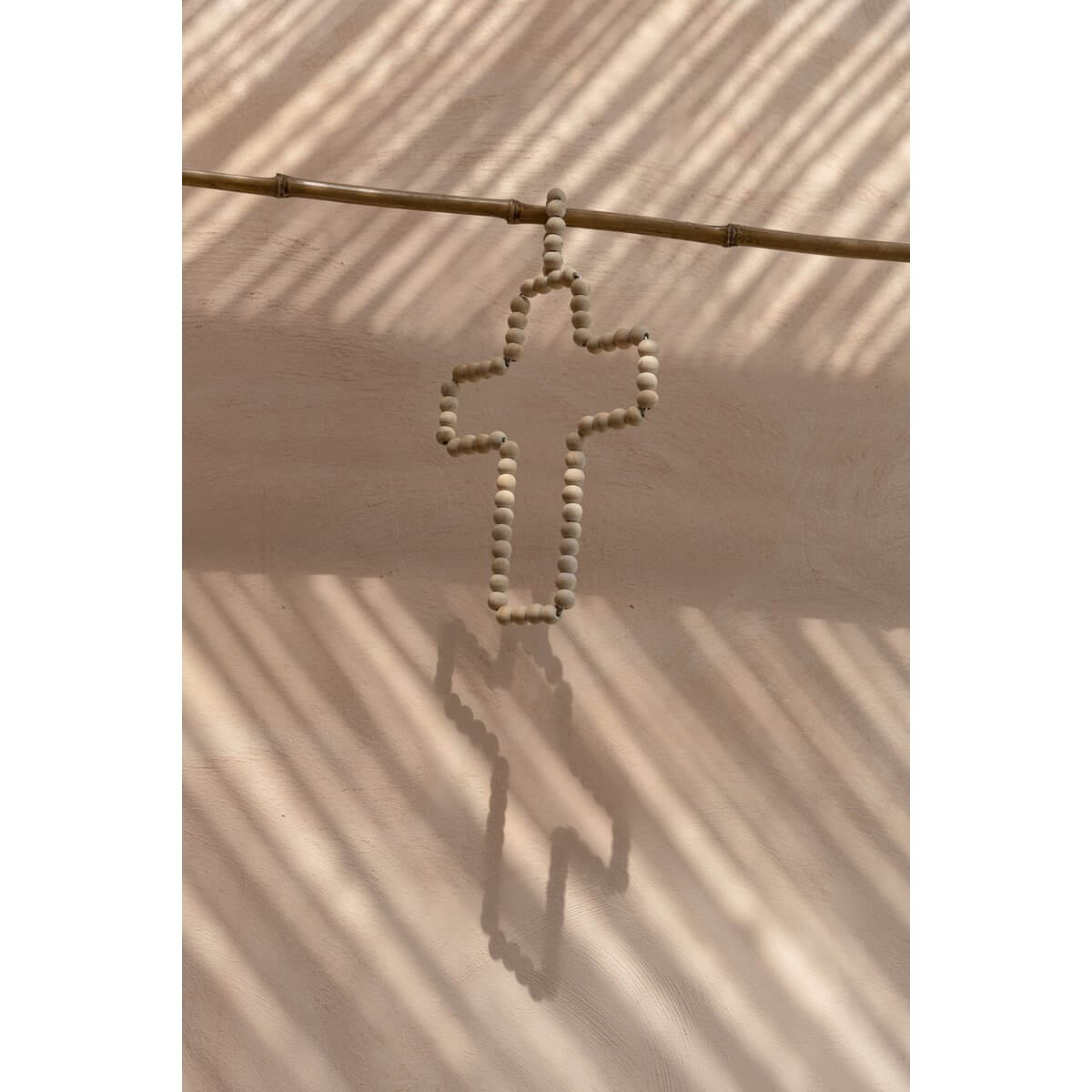 Of je nu religieus bent of niet, het kruis is altijd een mooi symbool. Vooral deze handgemaakt met houten parels. Hang dit decoratieve kruis waar je maar wilt. Laat u inspireren door uw eigen huisdecoratie.
