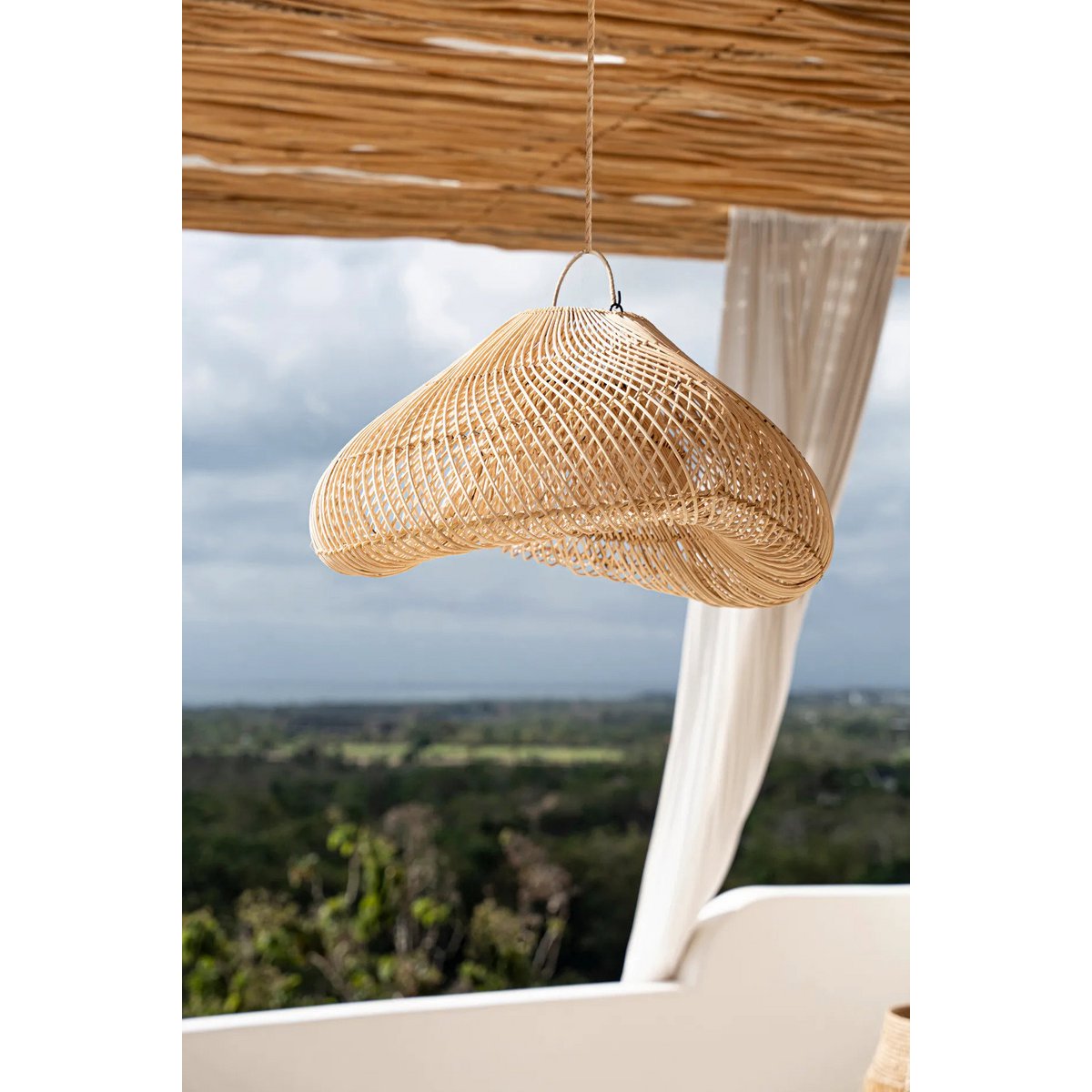 Ideaal voor gezellige hoeken, slaapkamers of zelfs een beschutte patio, deze hanger doorkruist zowel stijl als ambiance. De schaduw wordt verkocht zonder pluggen of bedrading, zodat u deze kunt combineren met het plafond of plug-in fitting die het beste bij uw behoeften past, afzonderlijk beschikbaar in onze winkel.