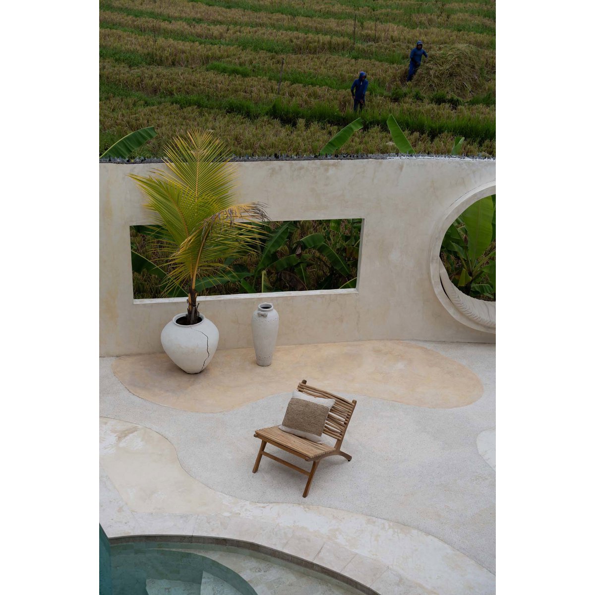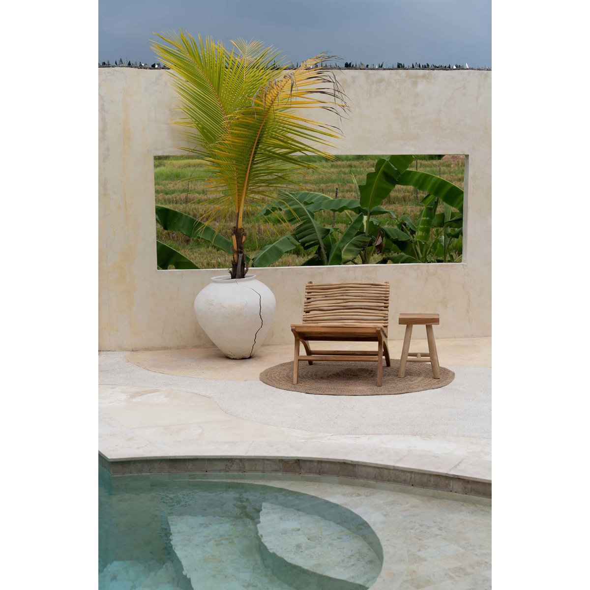 De eilandbewoner lounge -stoel is het ideale stuk om kustcharme en ontspanning naar je ruimte te brengen. Handgemaakt met zorg van teak houten balken, het biedt zowel stevigheid als schoonheid.