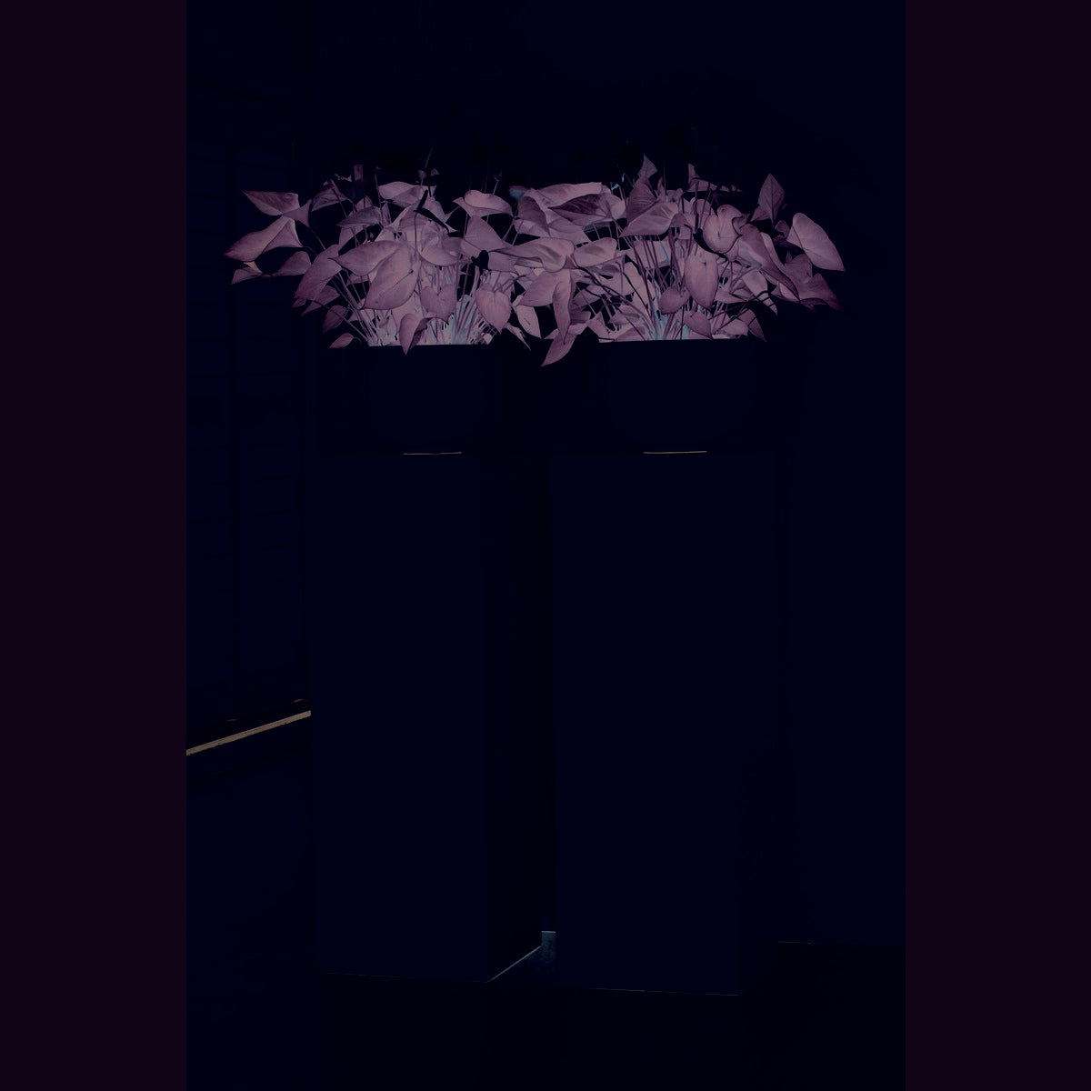 de ene kant is een pilaar, de andere kant een planter.